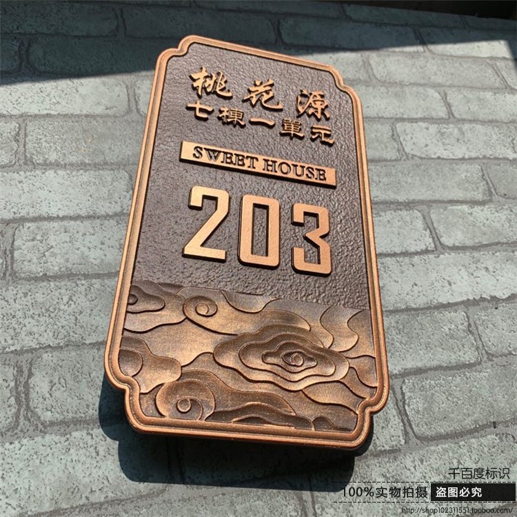 Metal high-end household residential house number custom acrylic antique copper pure copper retro embossed house number production