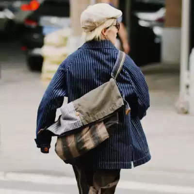 1533) Ten kinds of back adjustable splicing crossbody messenger bag heavy wash do old vintage tote bag