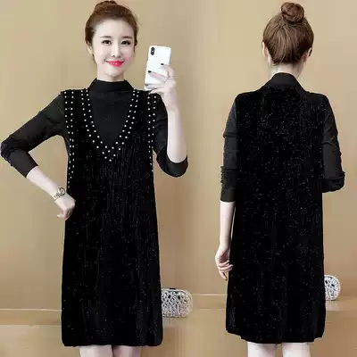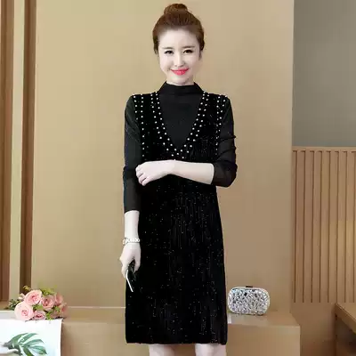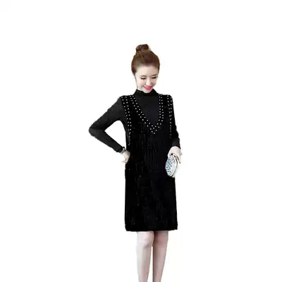 Large size women's 2021 Spring and Autumn new fat mm long sleeve mesh base shirt suspender skirt two-piece tide