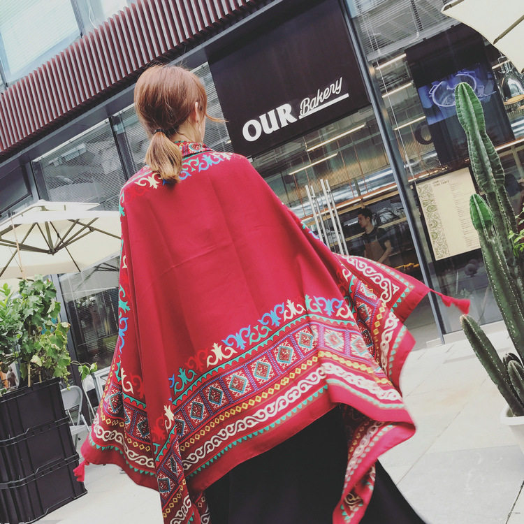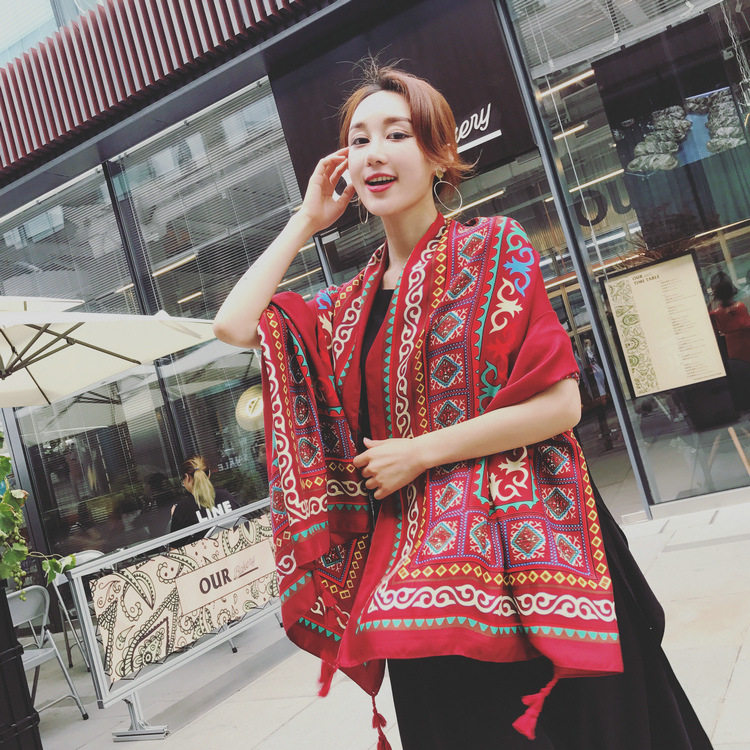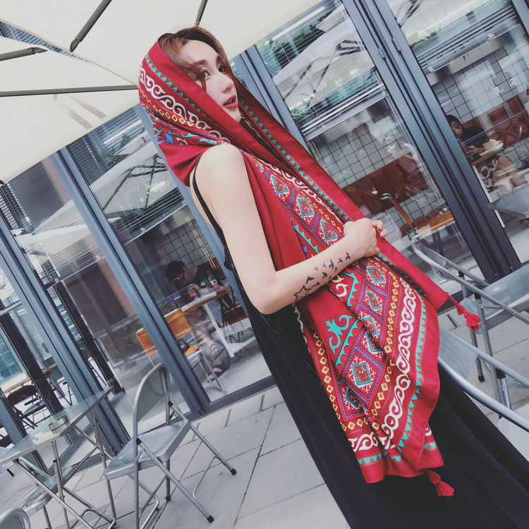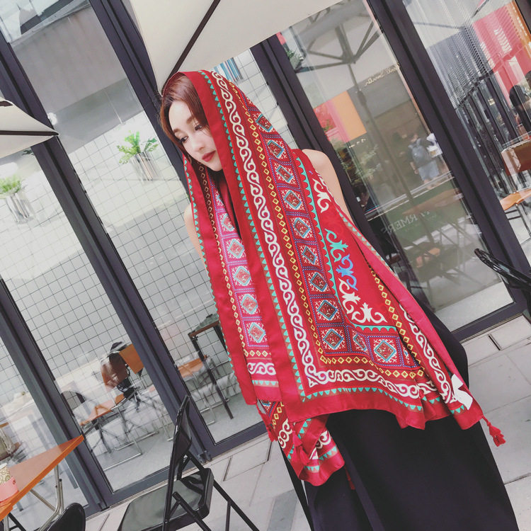Ethnic Wind Great Northwest Qinghai Lake Tourism Photo Red Tea Card Salt Lake Shawl Oversized Spring Autumn Desert Scarves