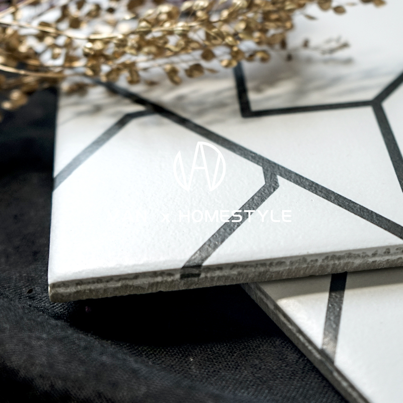 Vanne Nordic retro black and white line tiles Net red makeup room tile tile bedroom tile tile bedroom tile floor tile