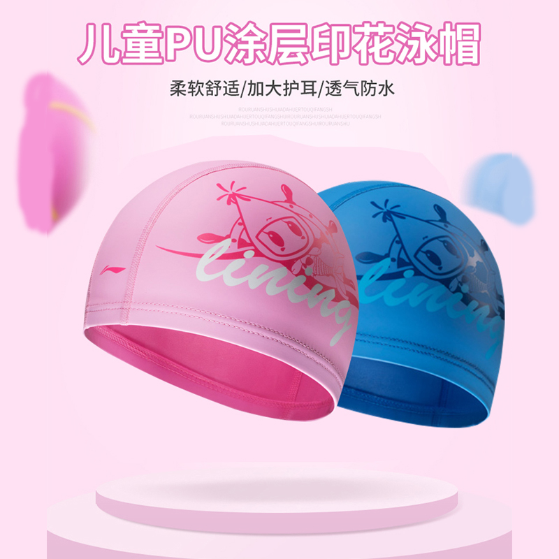 Li Ning Children's Swimming Hat Girls Boys' Stretch Sunscreen Girls' Fabric Baby Swimming Hat Swimming Glasses Set Cute