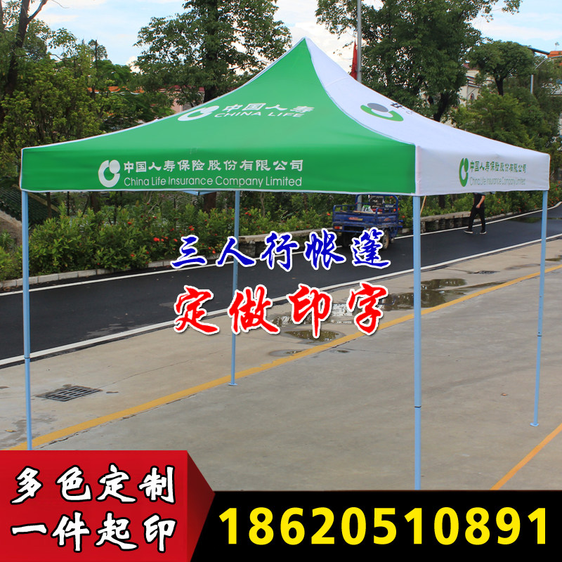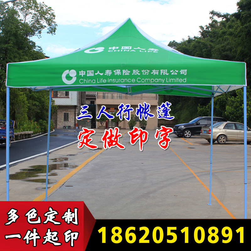 China Life Insurance advertising tent outdoor umbrella Four-legged angle umbrella stall exhibition shed 3x3 meters awning green