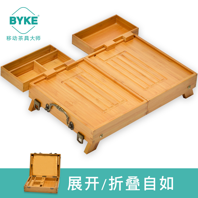 Outdoor folding mobile tea table Household drainage table One small Japanese simple portable Kung Fu tea set Bamboo tea tray