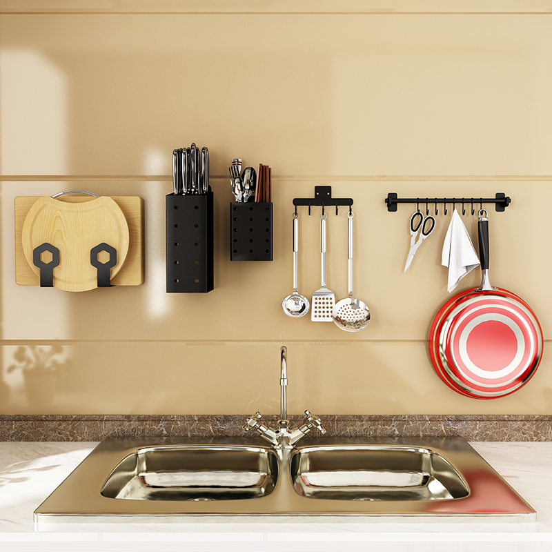 Kitchen Shell-free Stainless Steel Wall-mounted Cutter Chopping Board Lid Rack Seasonings Supplies Shelf-Taobao