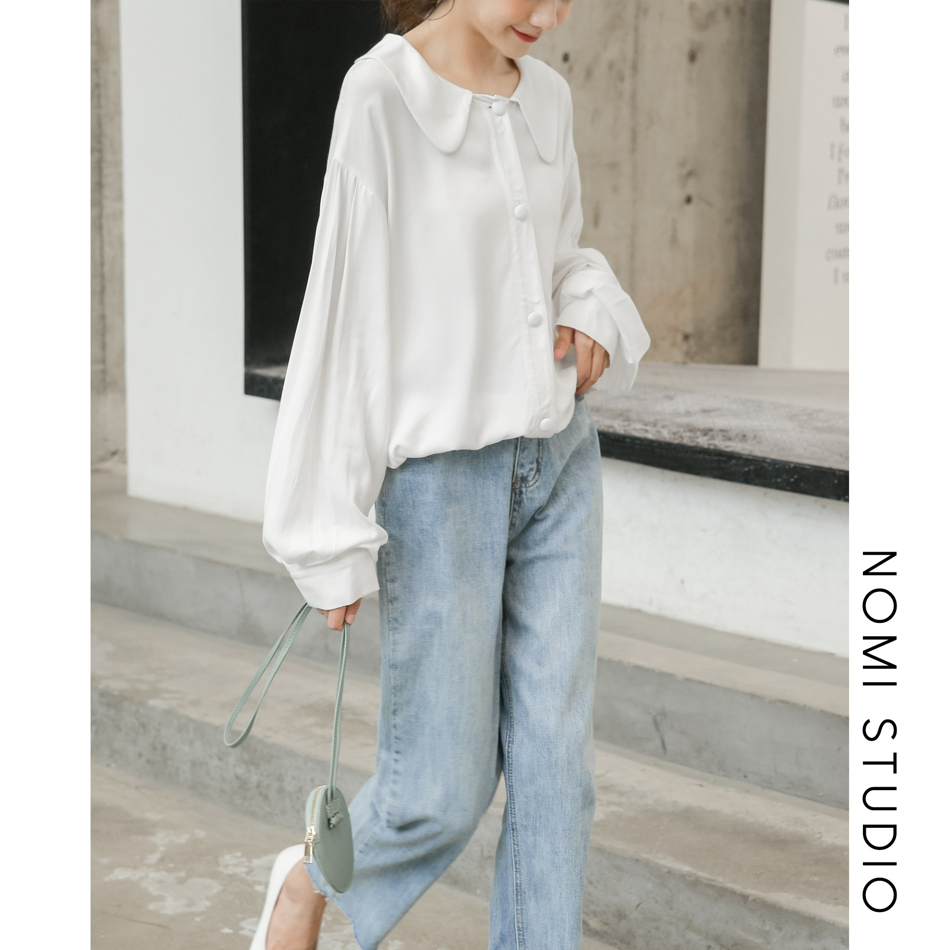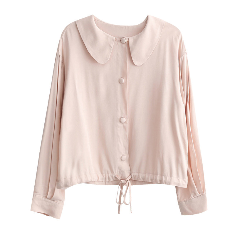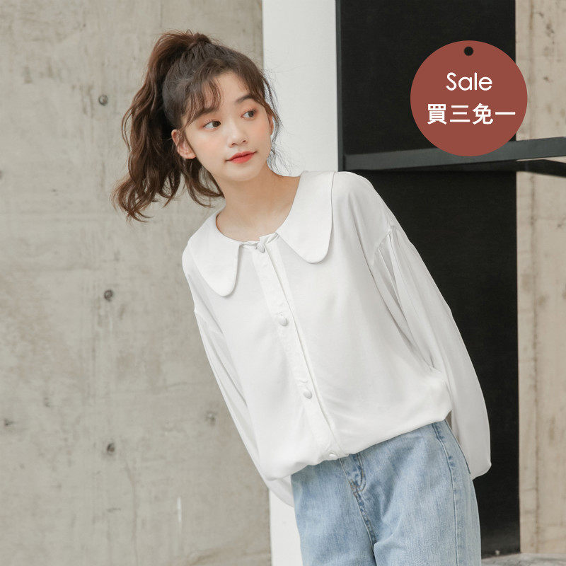 Buy three-free one soft and sweet retro dolly collar shirt woman design feeling small crowd loose white long sleeve shirt
