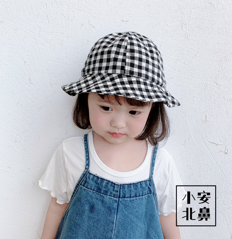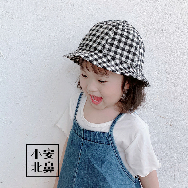 Baby Hat Spring Autumn Basin Hat Plaid 1 Year Old Girl Sun Shade Korean Version Male Baby Cute Super Cute Cotton Fisherman Hat