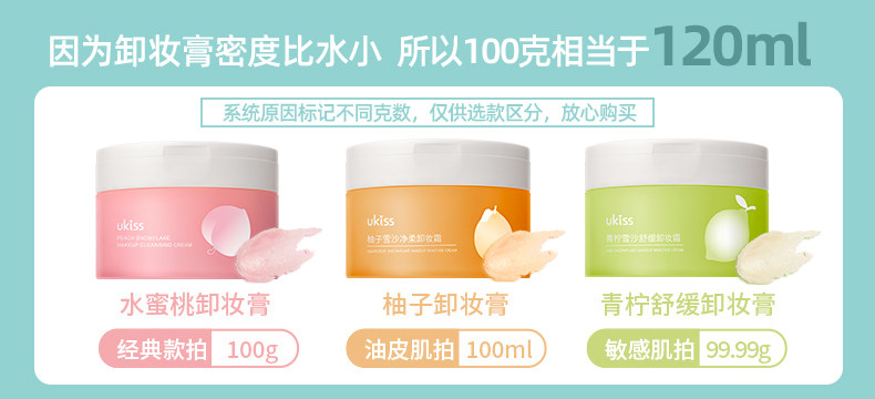 ukiss Makeup Remover Cream Eye Lip Face No Thrill Gentle Deep Clean Yo-yo Coth Water Honey Peach Pomace Remove Makeup Cream