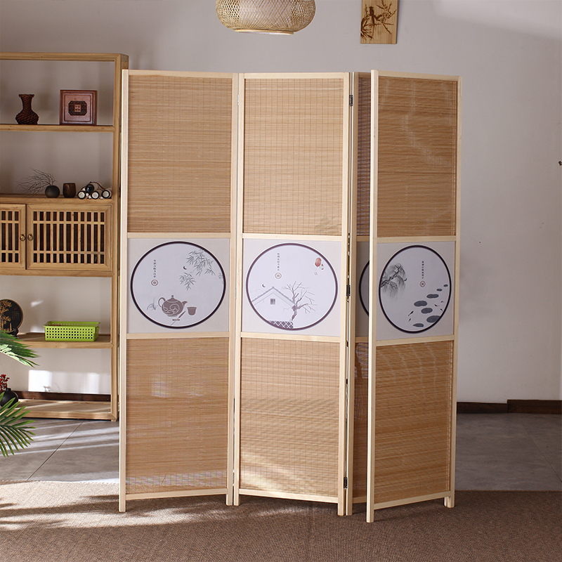 New Chinese bamboo screen Living room Bedroom occlusion partition wall Folding mobile dining room Flat wind household simple modern