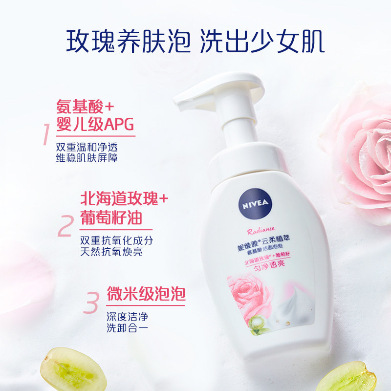 Nivea rose skin soak APG amino acid mild cleaning facial cleanser bubble lady official