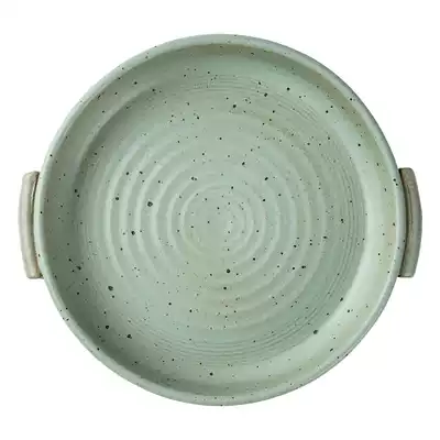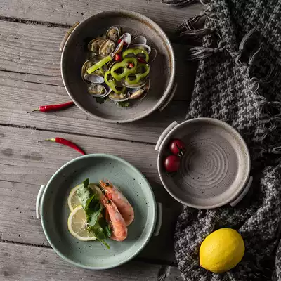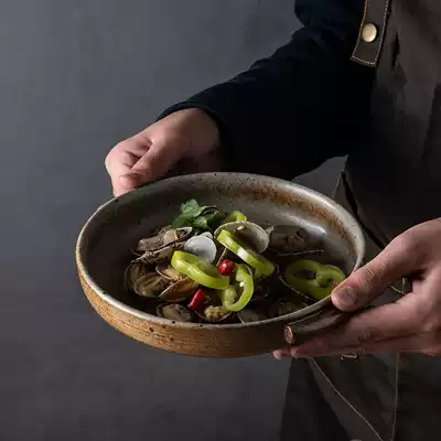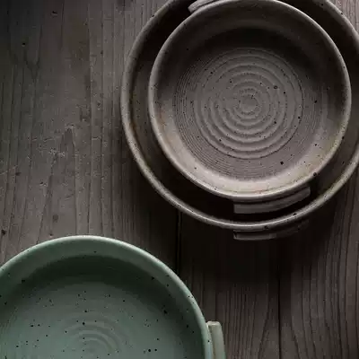 Japanese style rough pottery plate hotel tableware ceramic binaural fish plate retro household plate sashimi plate soup plate salad bowl