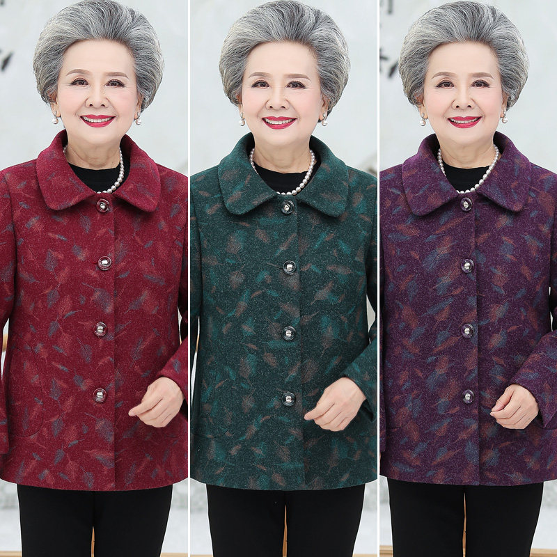 Middle Aged Seniors Autumn Clothing Mom Spring Autumn Coat Nico Clothes Old Clothes Wife Short and Grandma Mao Teach