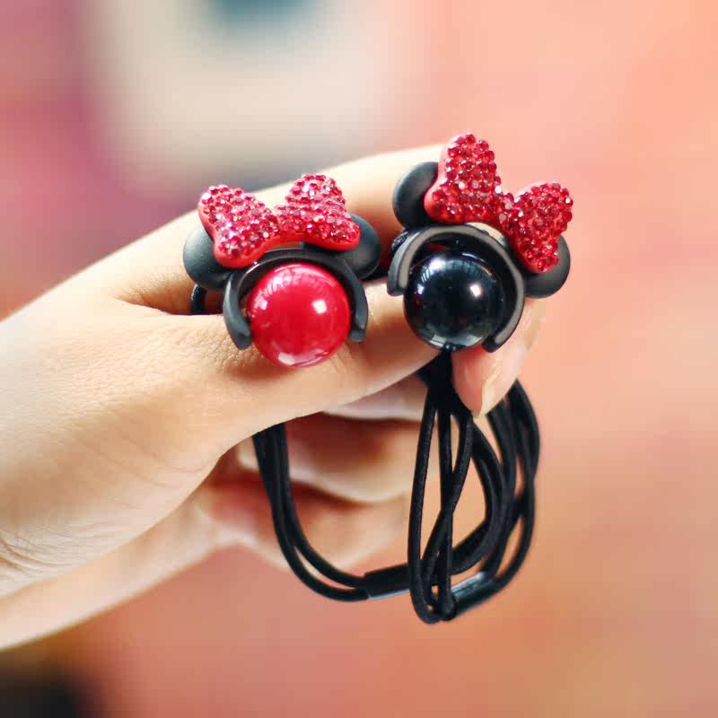 Red Mickey hair circles a black Mickey hair circle one.