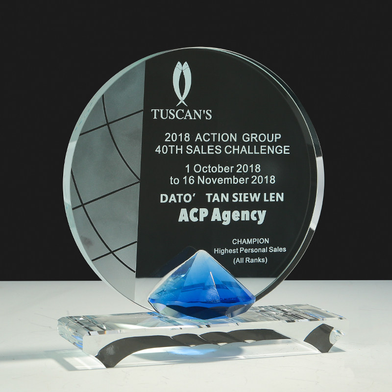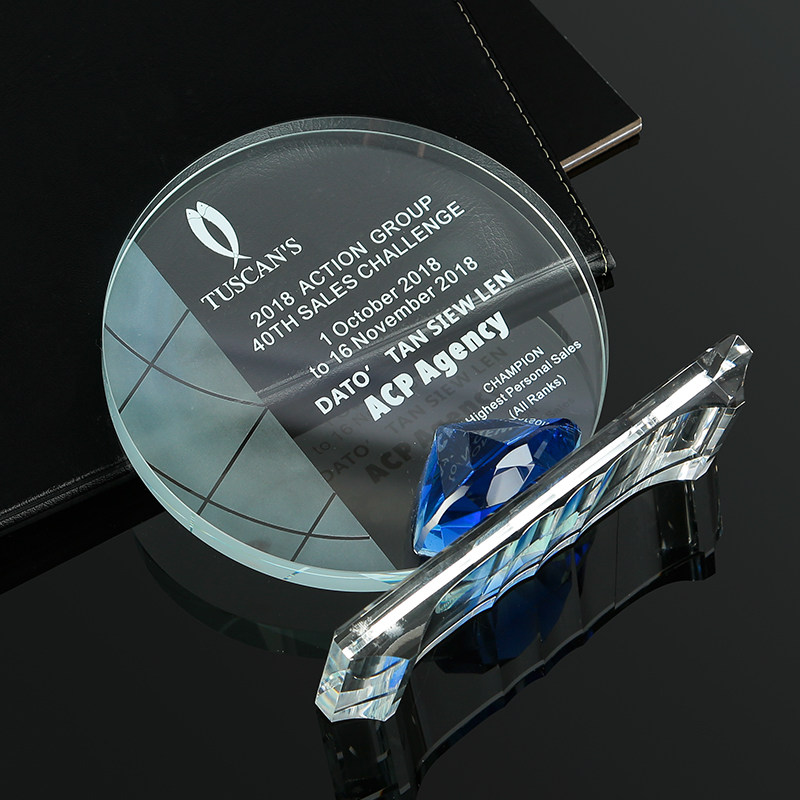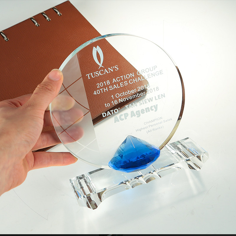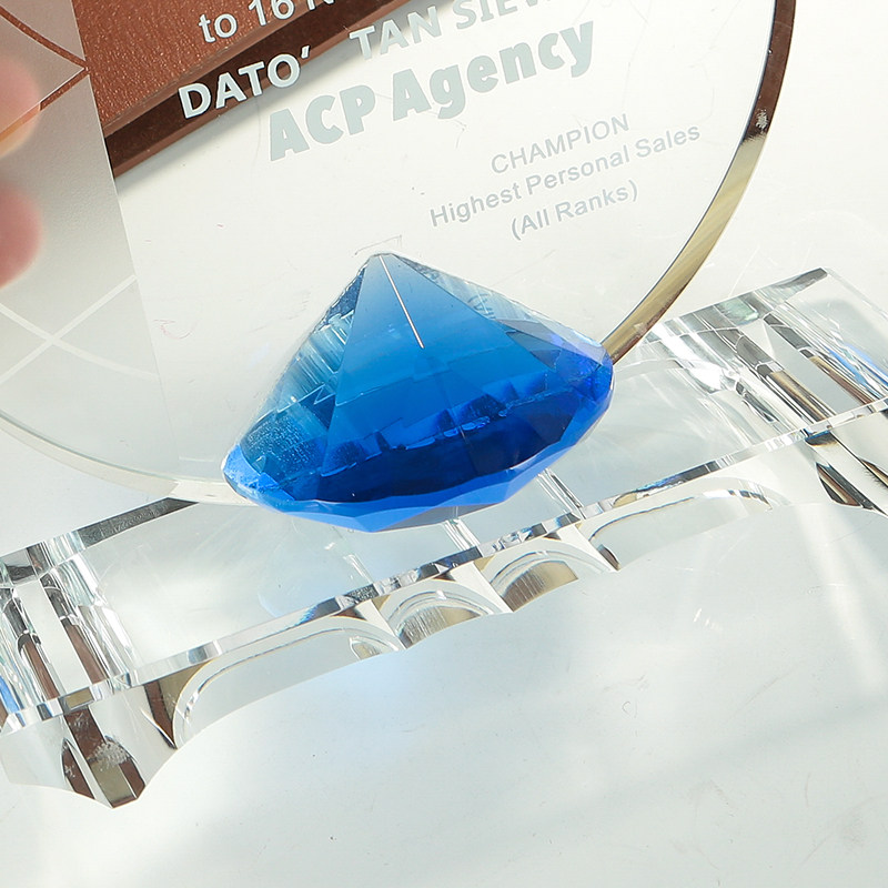 High-end Crystal Blue Diamond Trophy authorized round cards customized to make creative annual meeting high-end memorabilia to make a lettering medal