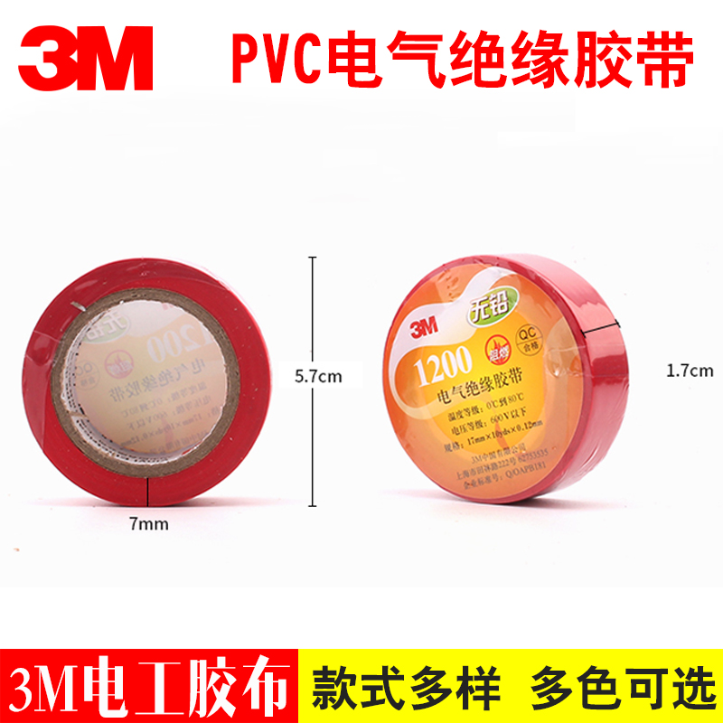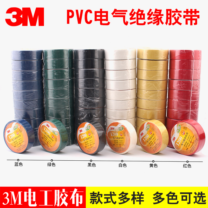 3m1200 electrical insulation tape flame retardant waterproof PVC lead-free environmental protection universal type insulating electrical adhesive cloth wear-resistant moisture-proof PVC electrical adhesive tape 17MM*10YD*10 rolls