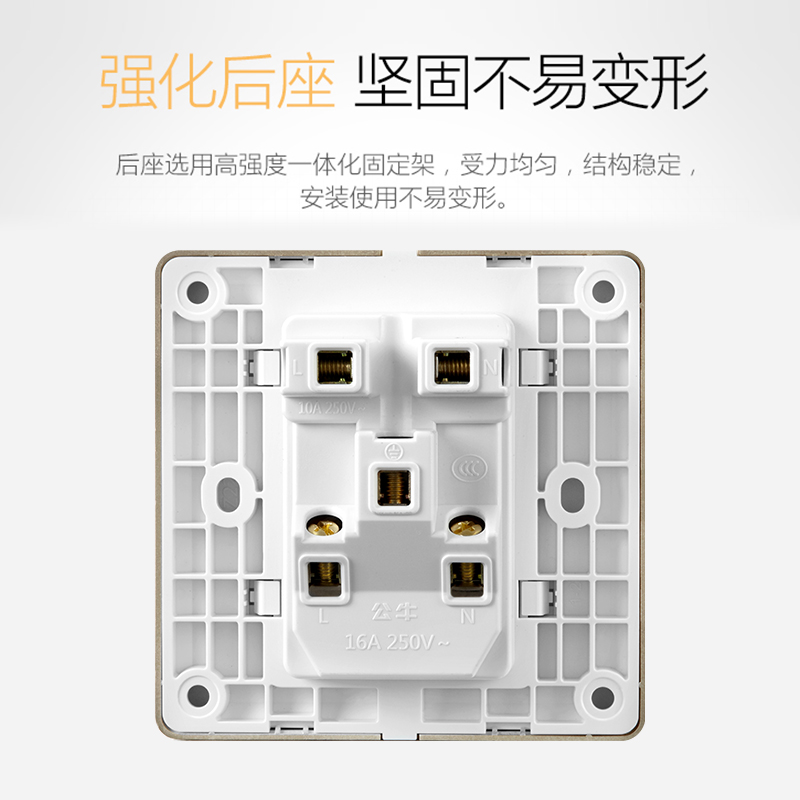 Bull two-hole 10A three-hole 16A five-hole socket two or three plug wall panel 86 type switch panel G12 gold