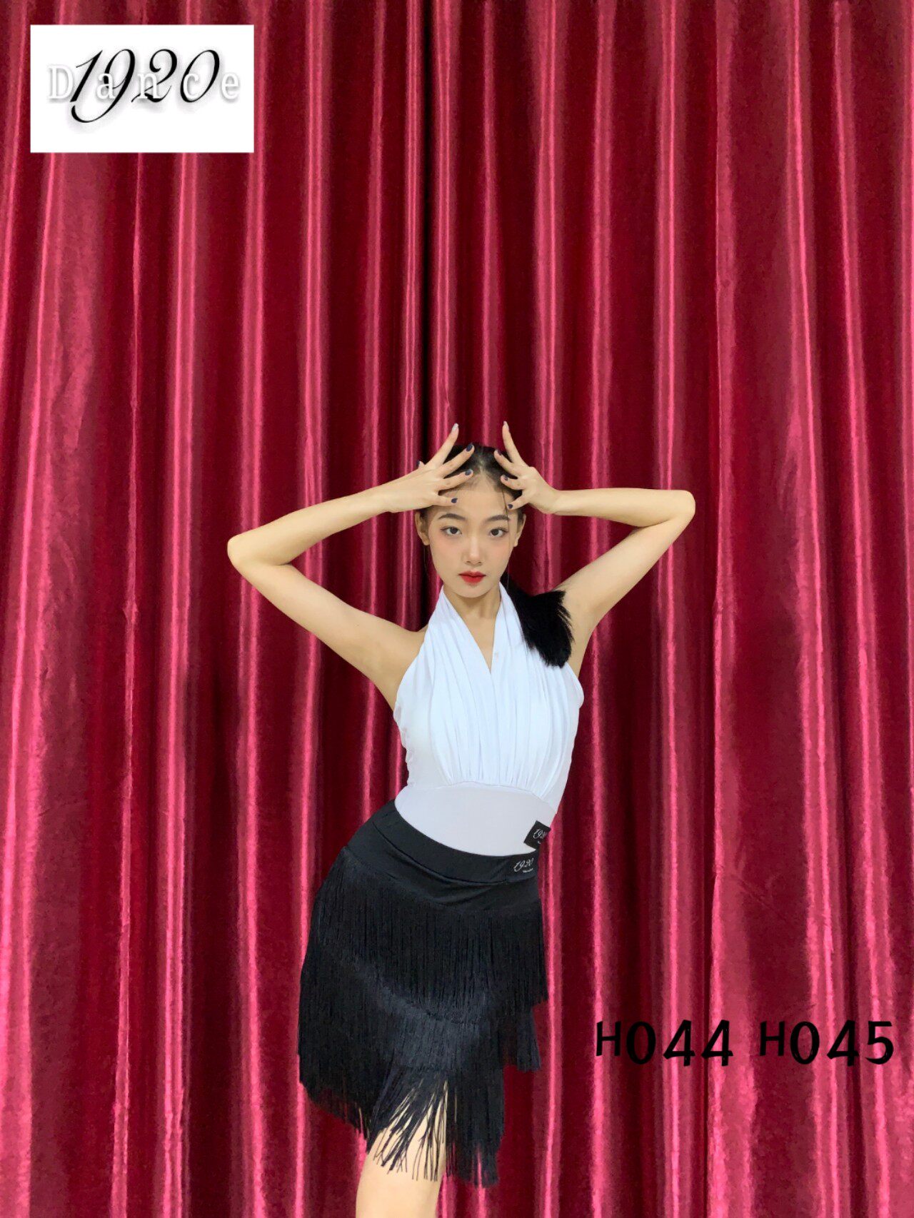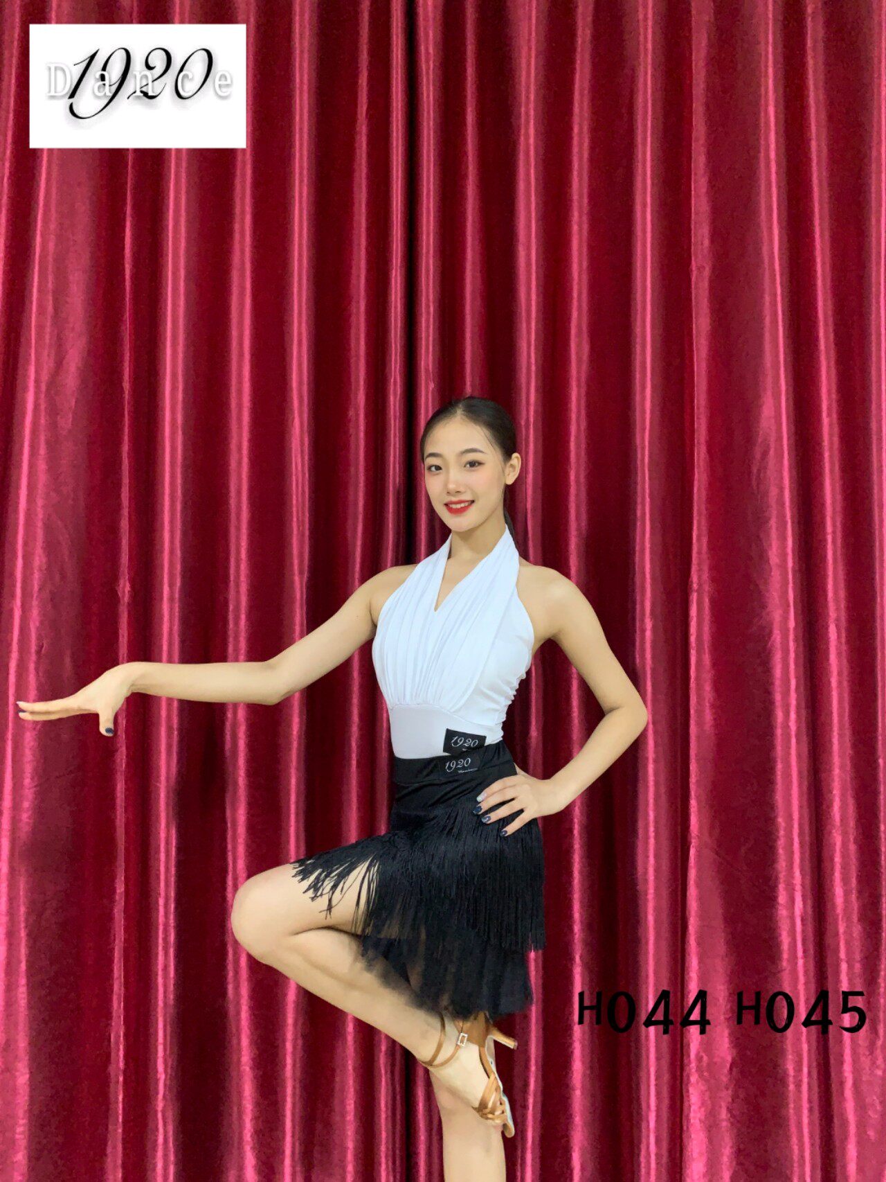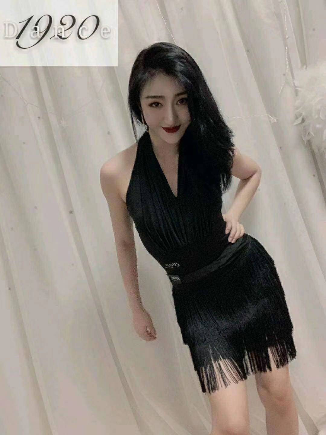 1920 044 hanging neck halter gym suit top 045 fringed skirt Latin dance practice suit sexy all-match