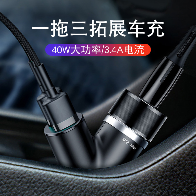 Y-type double USB 3 4A cigarette lighter 40W extension car charger