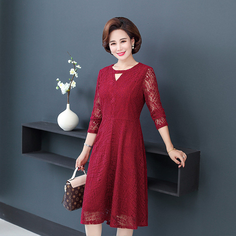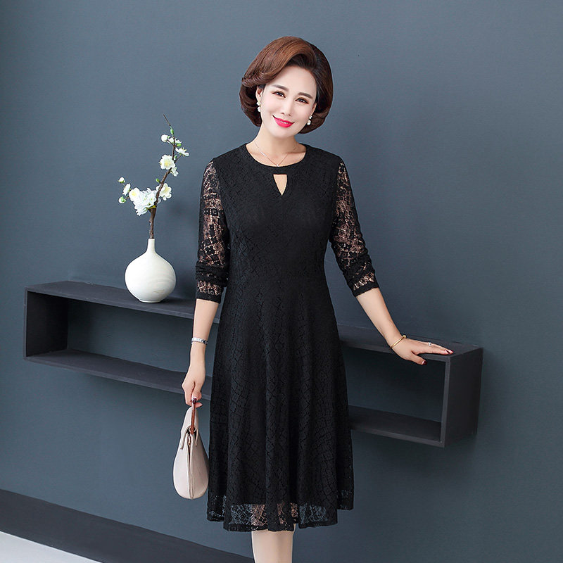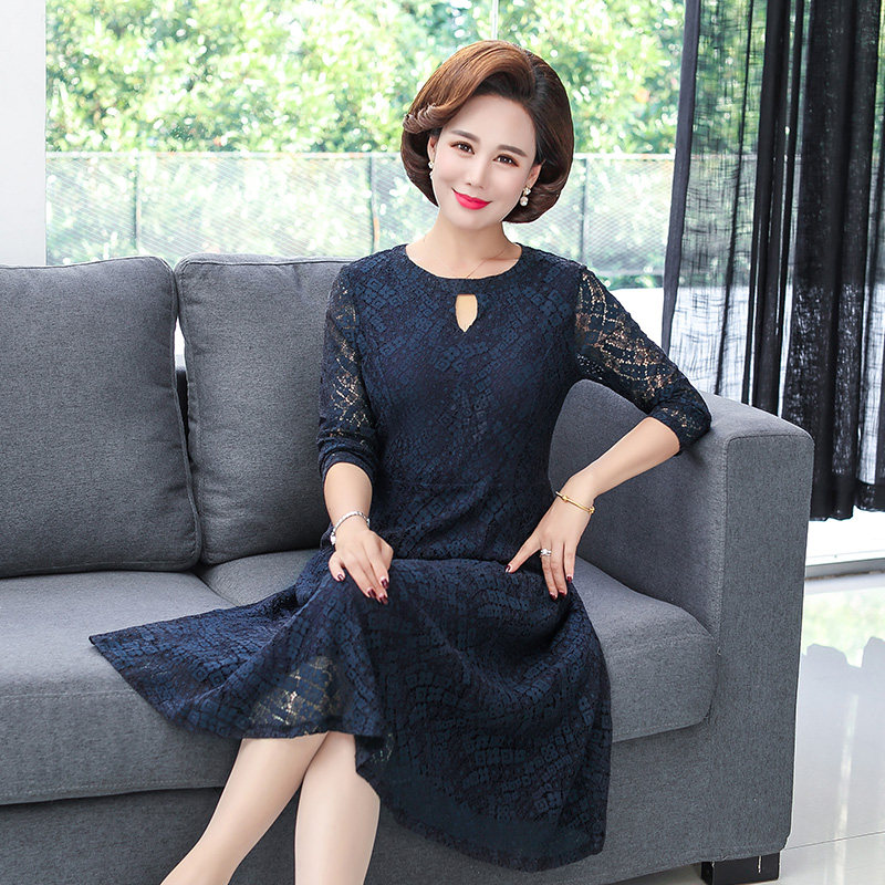 Middle Aged Woman Dress Spring Autumn Clothing Foreign Pie Long Sleeves Mid Aged 30 40 40-40 50 40-50-worn Mom Dresses