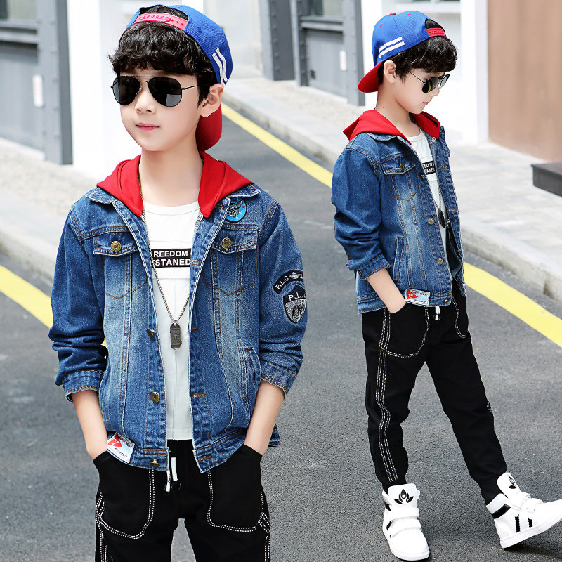 Boys denim jacket 2021 spring and autumn new middle and large children lapel denim jacket top foreign style handsome Korean version of the tide