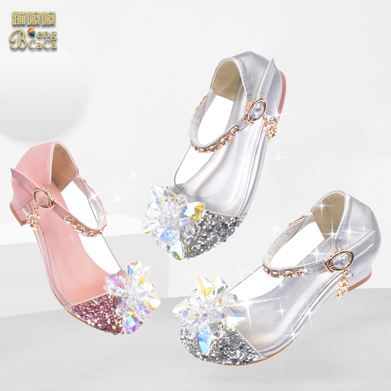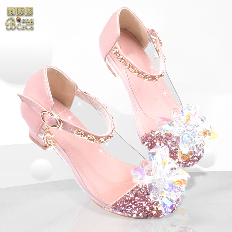 Girl Princess Shoes High Heel Performance Leather Shoes Children 2021 Spring Summer Fashion Shoes Little Girl Foreign Pie Crystal Single Shoes