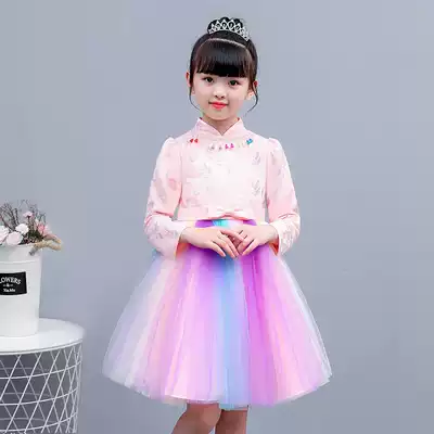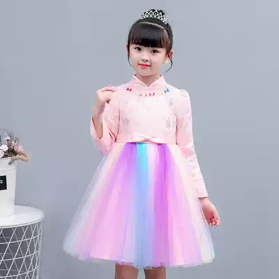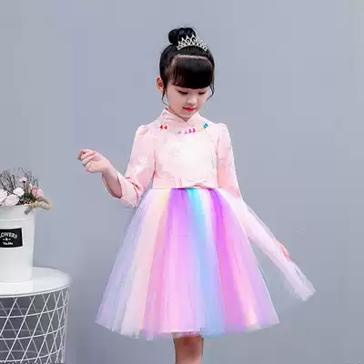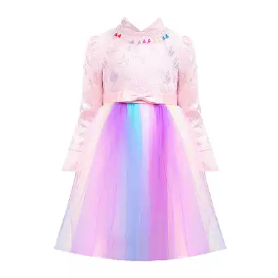 Girls Skirt Spring and Autumn Dress Little Long Sleeve Princess Dress Gala Dress Super Immortal Children Rainbow Skirt Birthday