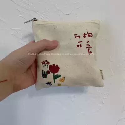 nullthing original cute embroidered canvas coin purse Literary aunt bag ins storage bag