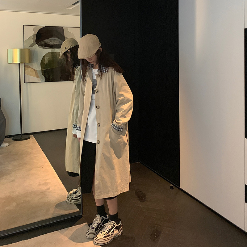 Red Man Gallery Chic Windcoat Jacket Woman 2022 New Korean Wind in Long version Single-row buckle Design Sensation Superior Coat