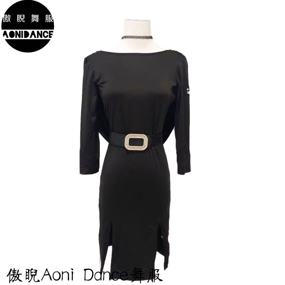 Amanda dance dress pride A29 adult women's national standard Latin dance big swing back front slit three-point sleeve dress