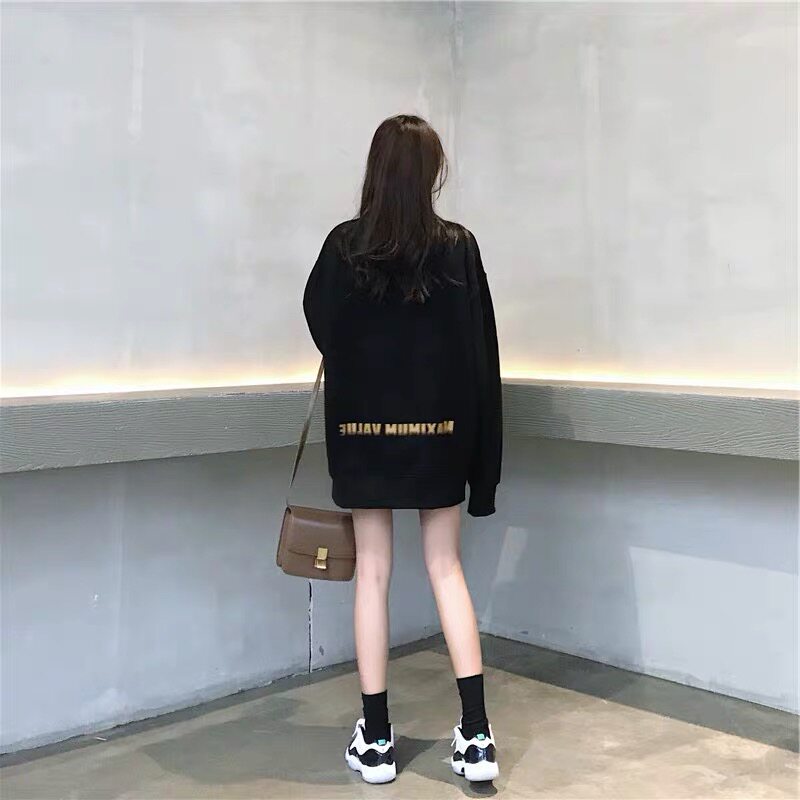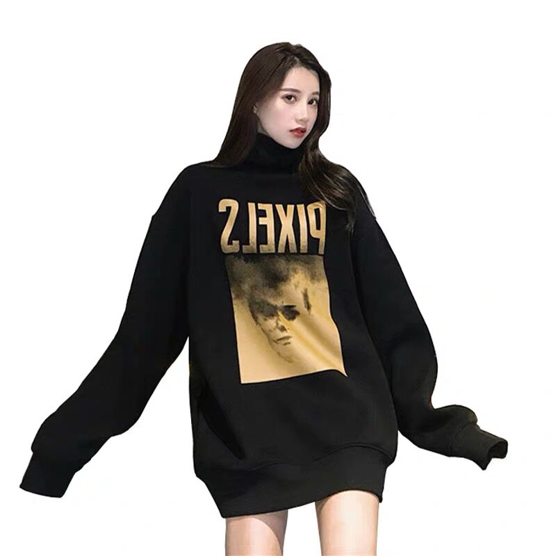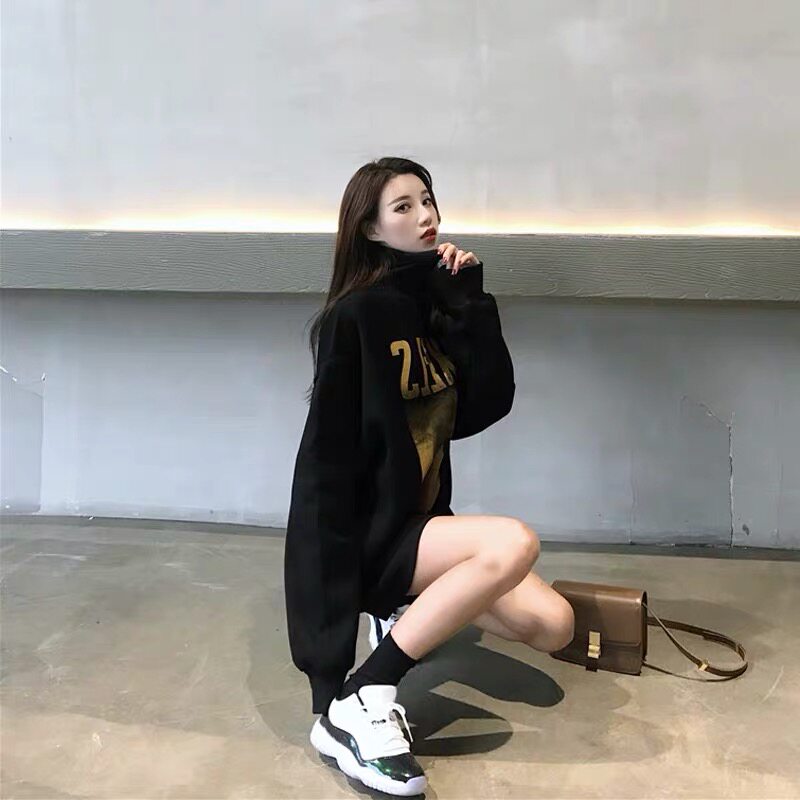 Black high collar thick cotton T women 2021 autumn and winter plus velvet padded European and American ins super hot lazy wind Joker coat