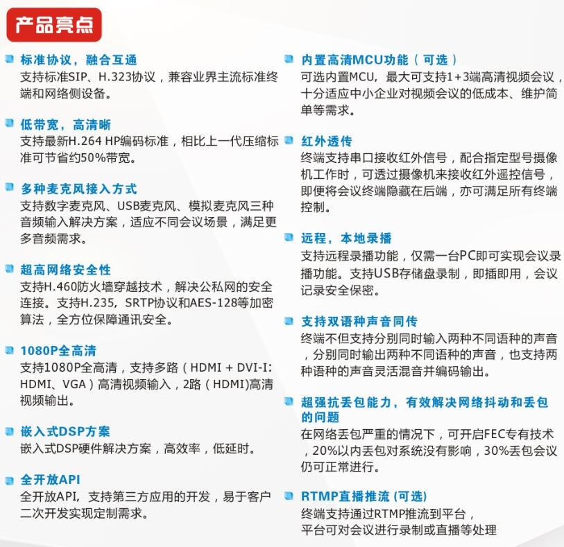 Huachang Video HC-C90 HD video conference terminal SIP H 323 protocol built-in mcu embedded