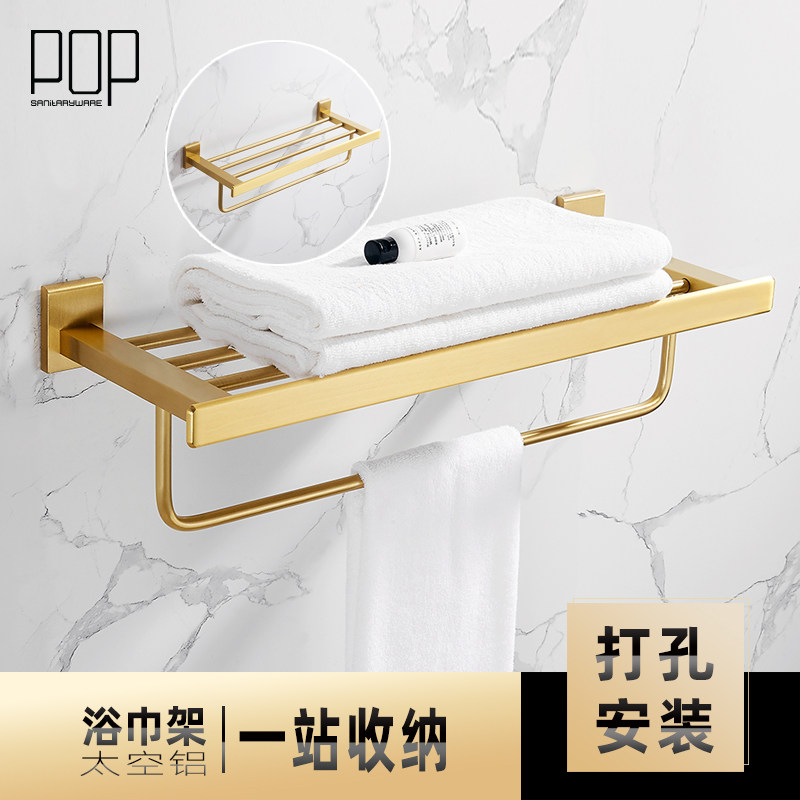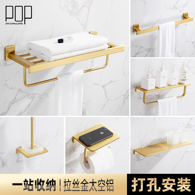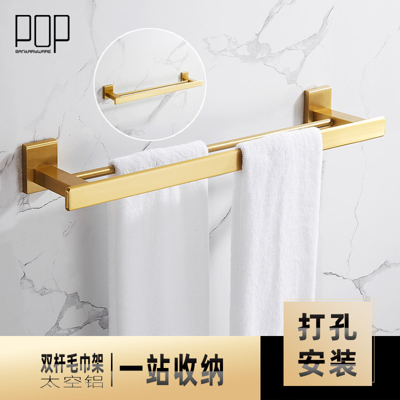 1919 gold three-piece set A bath towel rack double rod with cup shelf] 1919 gold three-piece set B bath towel rack single rod shelf] 1919 gold three-piece set C bath towel rack double rod