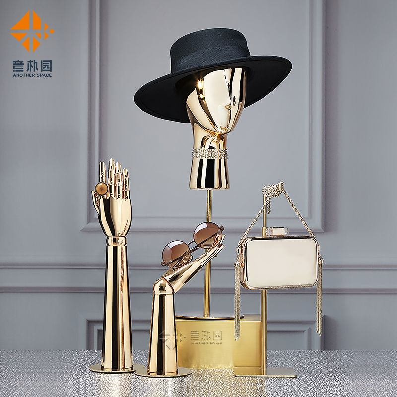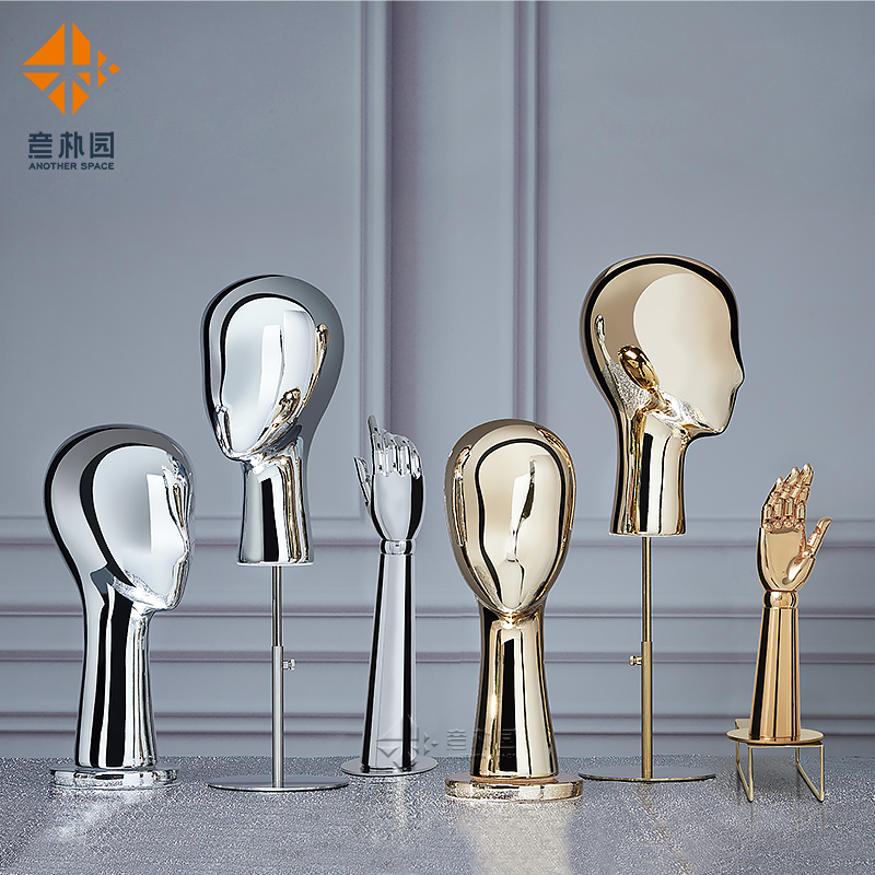 Yipuyuan Clothing store Hat jewelry decoration display rack Electroplated head model props fake hand model window display