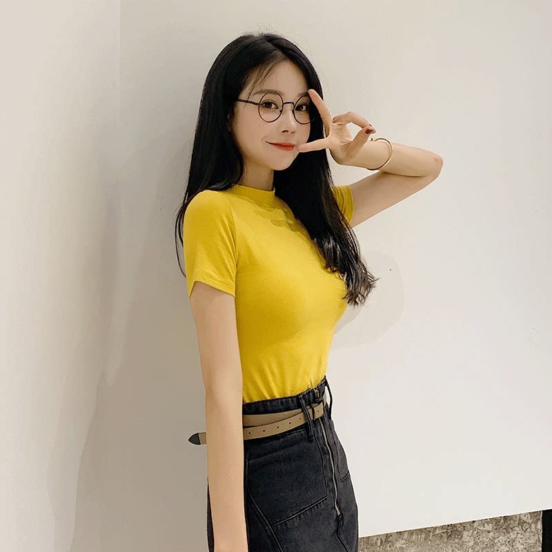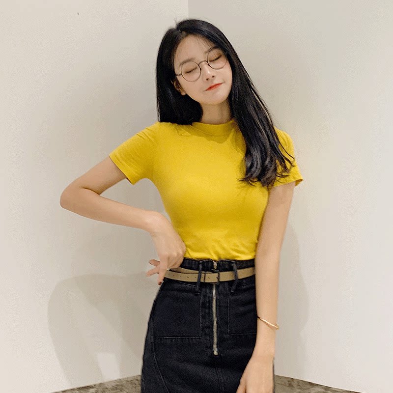 Harbor Wind in Short Sleeve T-Shirt Women in early autumn with a puppet Han Edition student tide of yellow gas