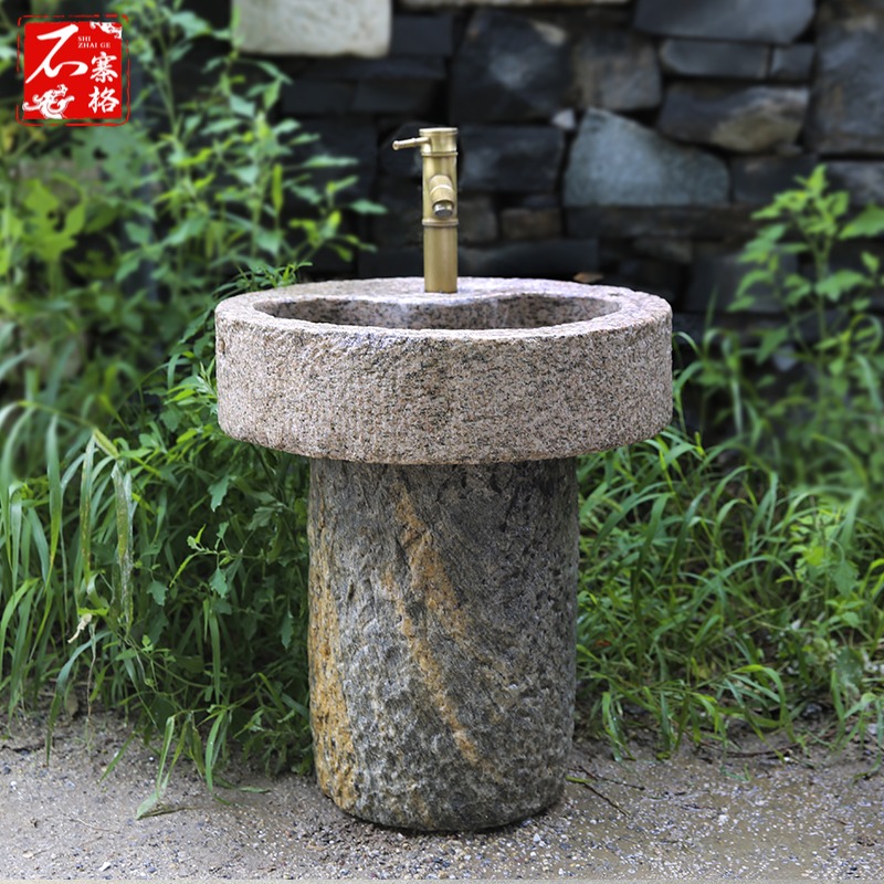 Old stone sink washbasin round single-hole column washbasin stone outdoor courtyard washbasin marble square