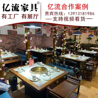 Light luxury marble smokeless purifier under smoke exhaust induction cooker gas stove string lifting smokeless hot pot table and chair