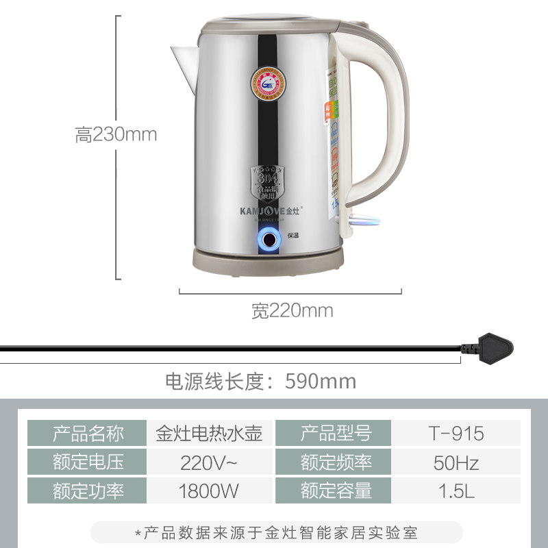 Gold stove T - 915 All steel heat insulation kettle insulation and one - body electric kettle home heat cut off automatically