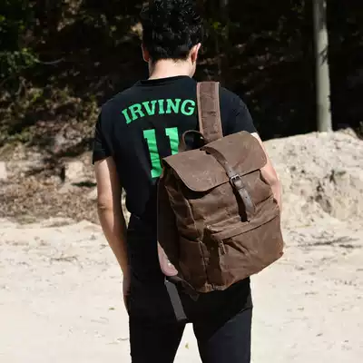 American retro military style oil wax canvas backpack Japanese trend classic casual shoulder bag Tooling style bag
