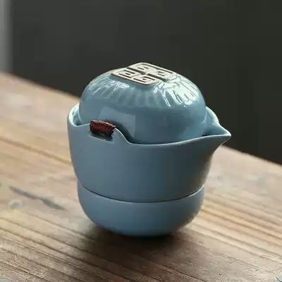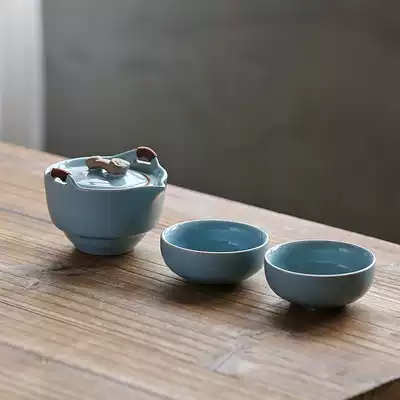 Ru kiln ice cracked sky green open film can raise teapot quick Cup One Pot Two Cups kung fu tea set