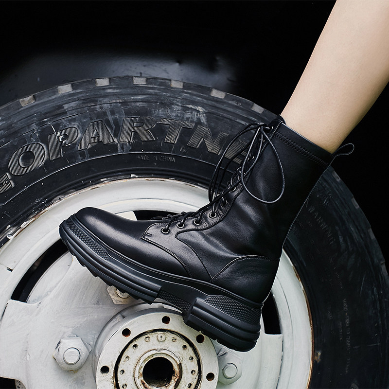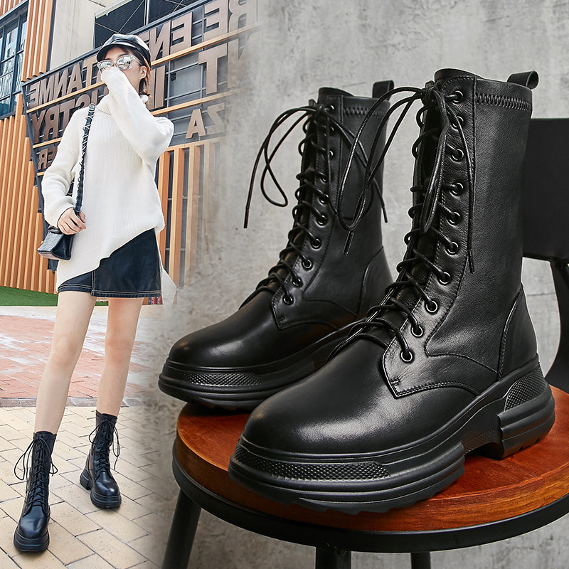 British style thick-soled heightless boots versatile Martin boots women's middle tube 2022 new Spring and Autumn leather single boots locomotive boots