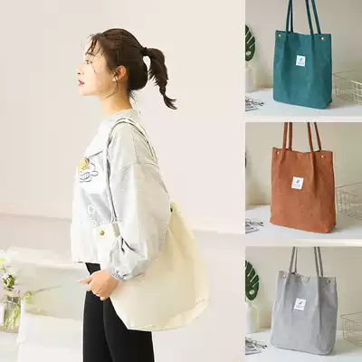 Canvas bag women shoulder Korean simple Joker 2019 New ins large capacity leisure Japanese simple Academy style