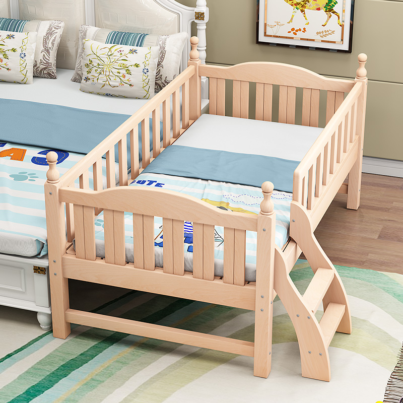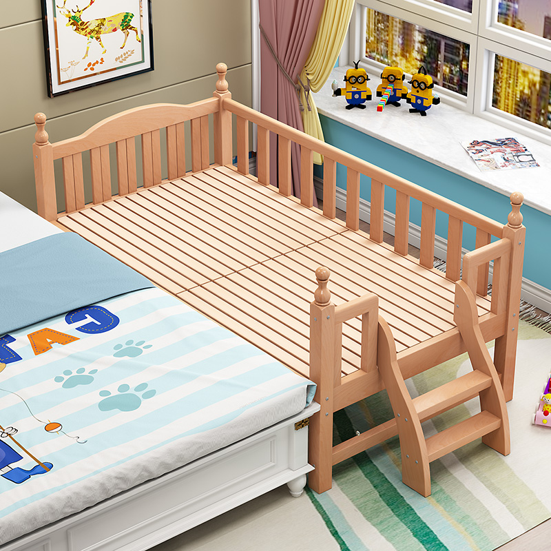 Solid wood children's bed with guardrail boy girl child bedside widening splicing big beech bed small bed crib