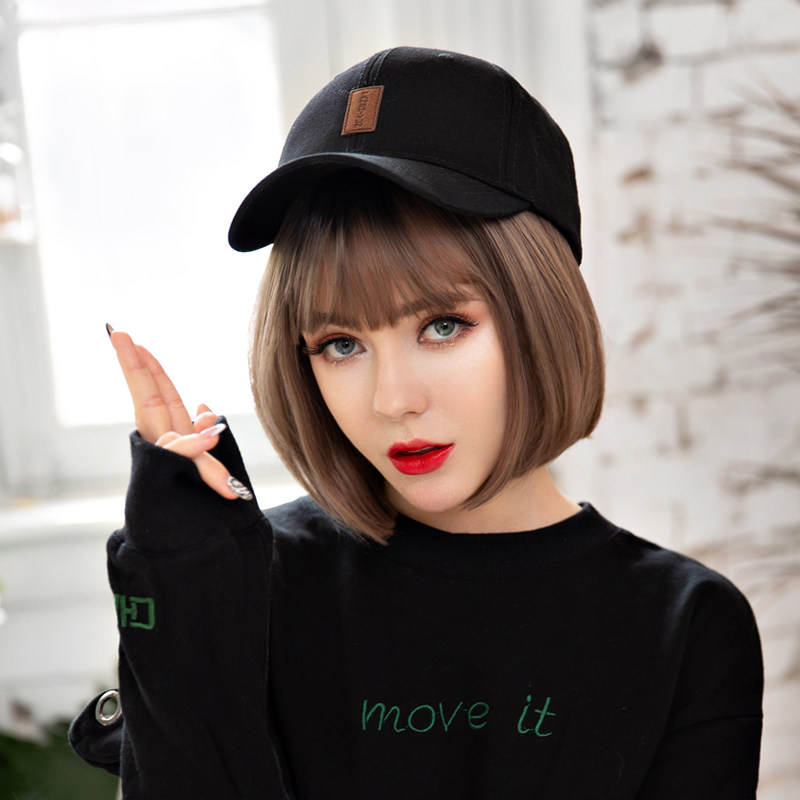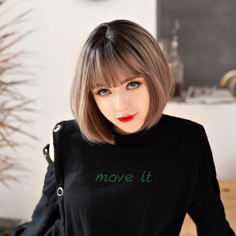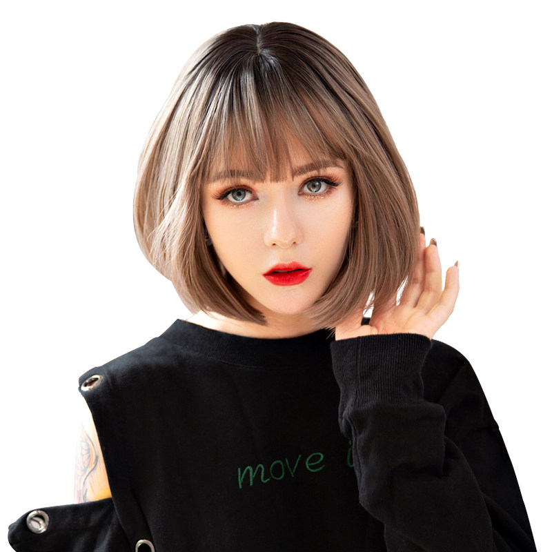 Wig female short hair Full head cover Korean bobo bobo student net red realistic round face repair face clavicle hair