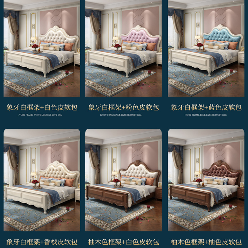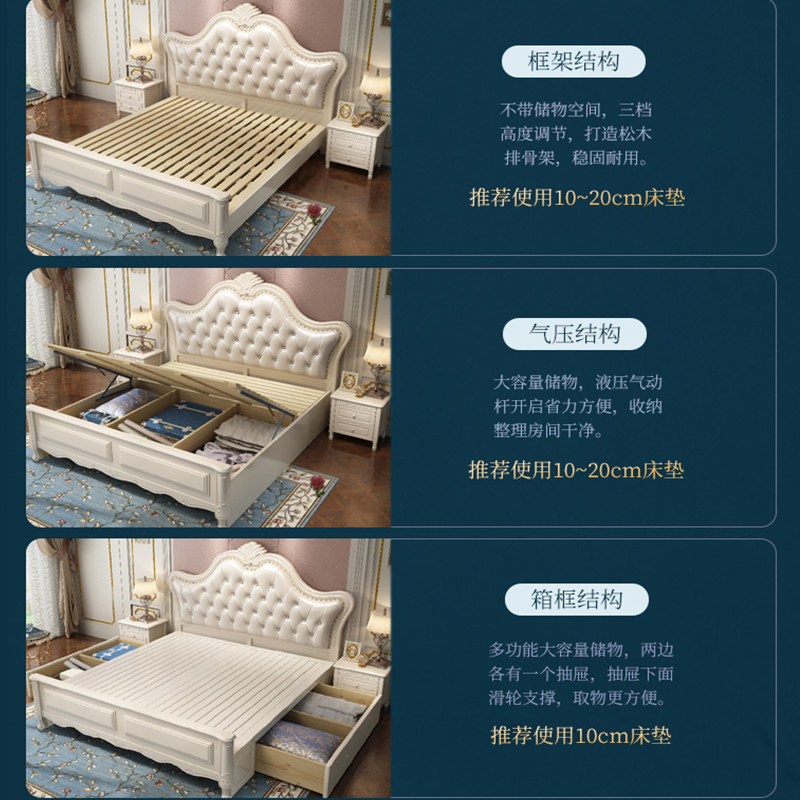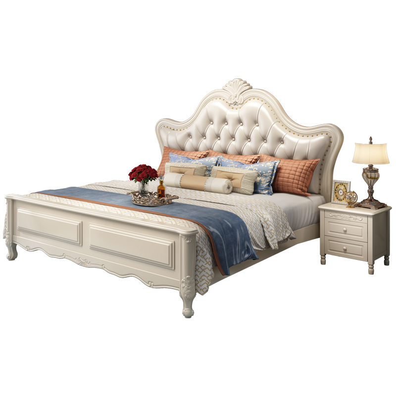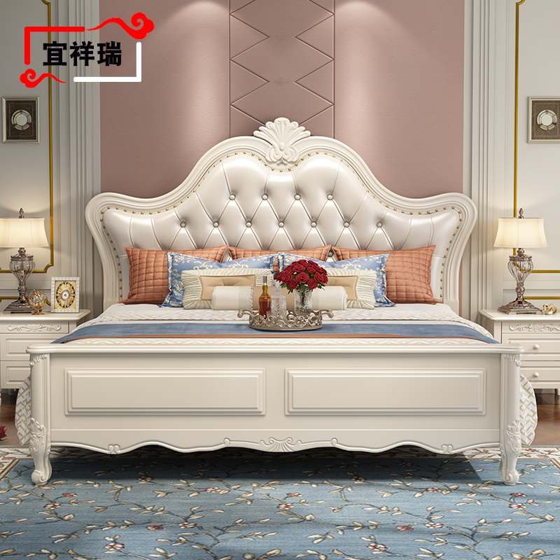 European solid wood bed Double 1 8 meters white modern simple storage bed 1 5 meters American wedding bed Bedroom Princess bed