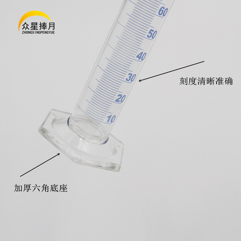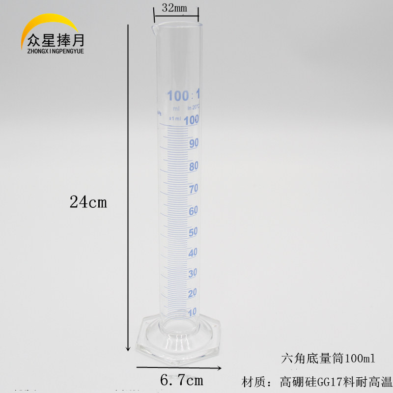 Glass hexagonal bottom measuring cylinder high-borosilicate high temperature resistant glass 10ml25ml50ml100ml250ml500ml1000ml glass instrument experimental consumables quantity instrumental teaching aid