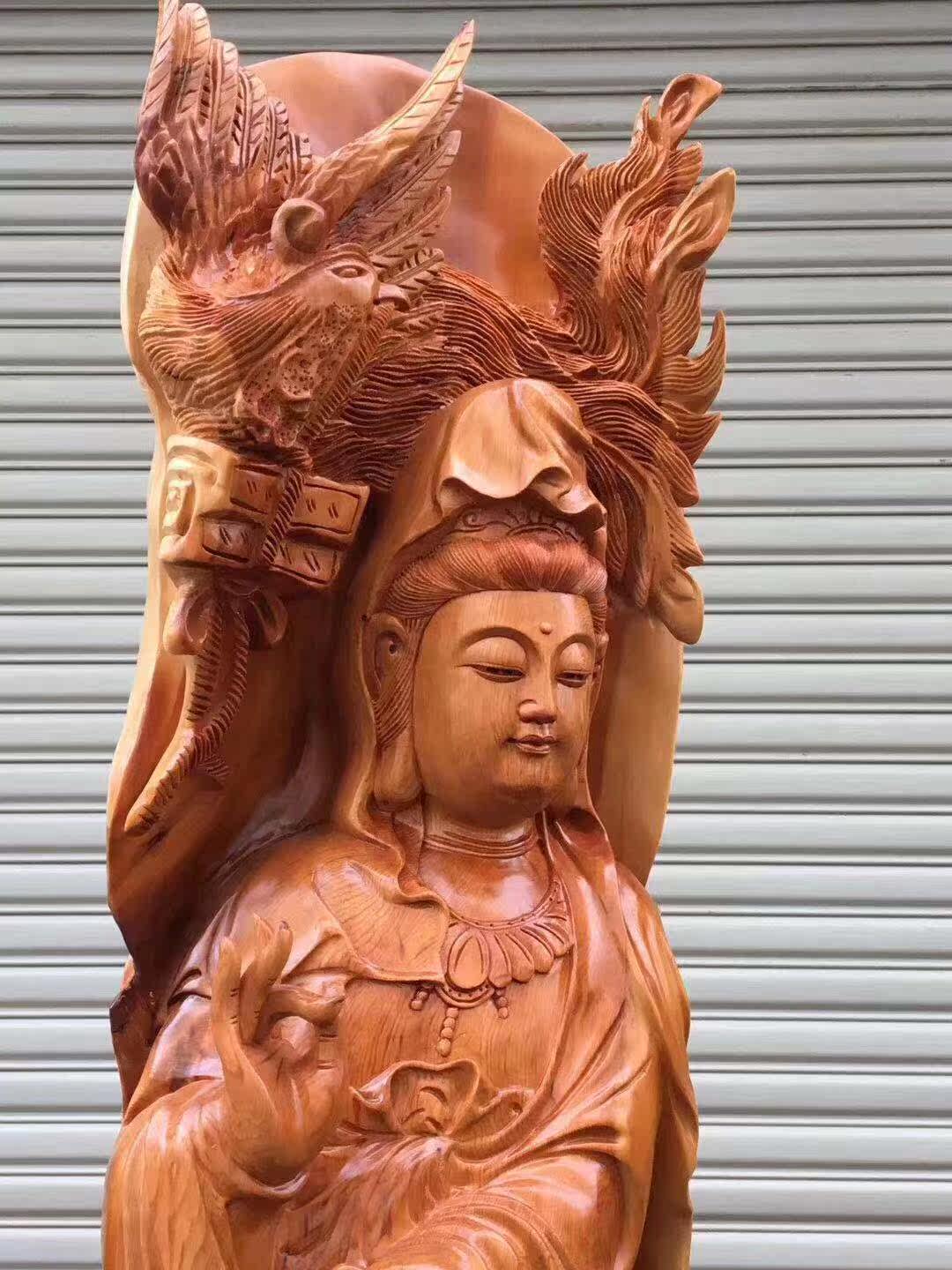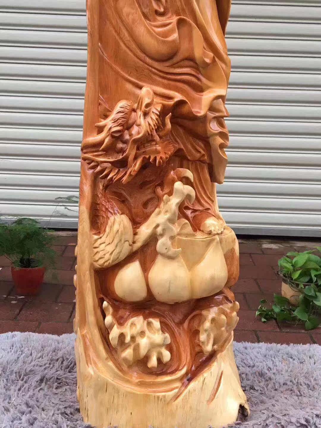 Large yew natural tree root wood carving Guanyin Pear Camphor cliff cypress floor-to-ceiling home decoration