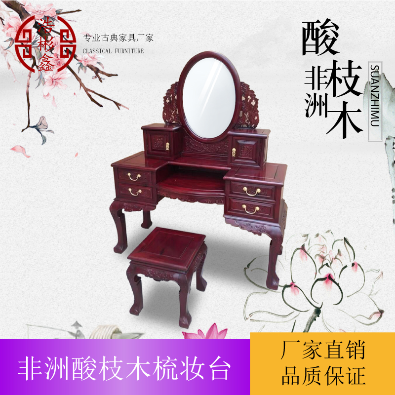 Red Wood Furniture African Acid Branches Wood Makeup Bench Solid Wood Chinese Imitation Antique Makeup Table Carved Makeup Mirror Table Bench Composition