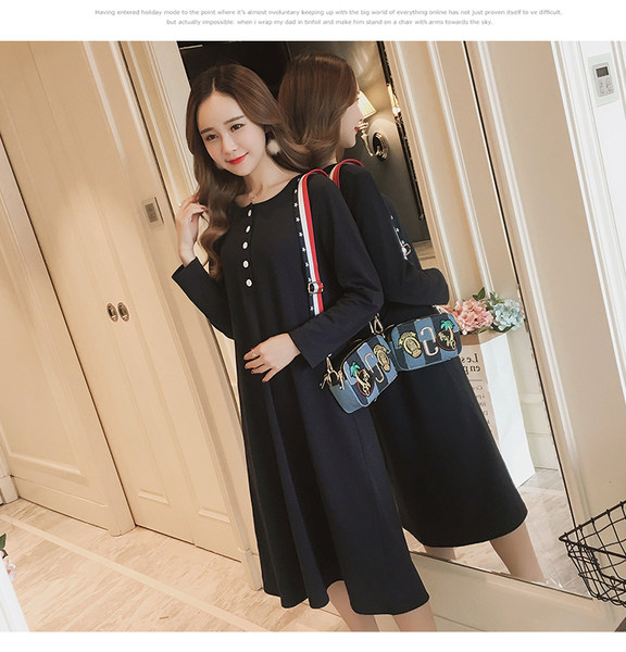 Pregnant Woman Long Dress Fashion Spring Autumn Style Casual Loose Foreign Dress Temperament Spring Net Red Skirt Large Size Women's Dress Spring Dress