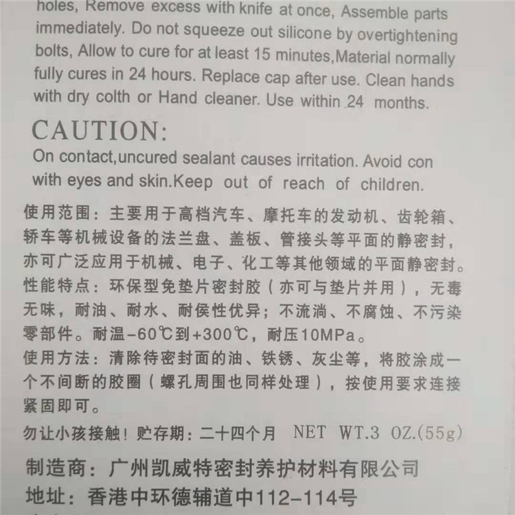 Eco-friendly gasket-free sealant Automotive engine locomotive Mechanical maintenance Anti-triple leakage silicone adhesive 100g