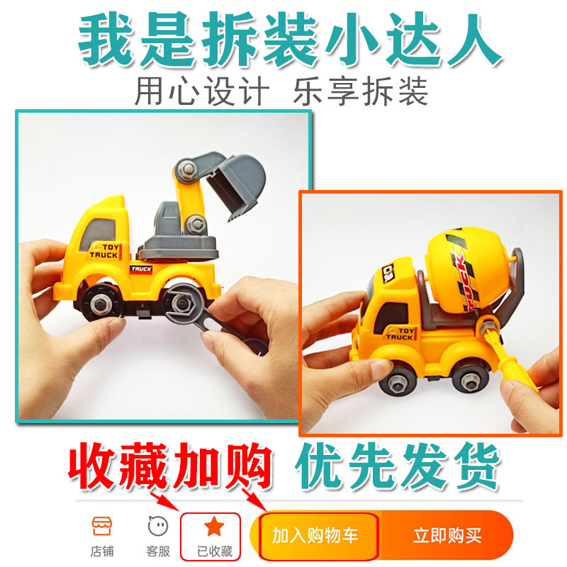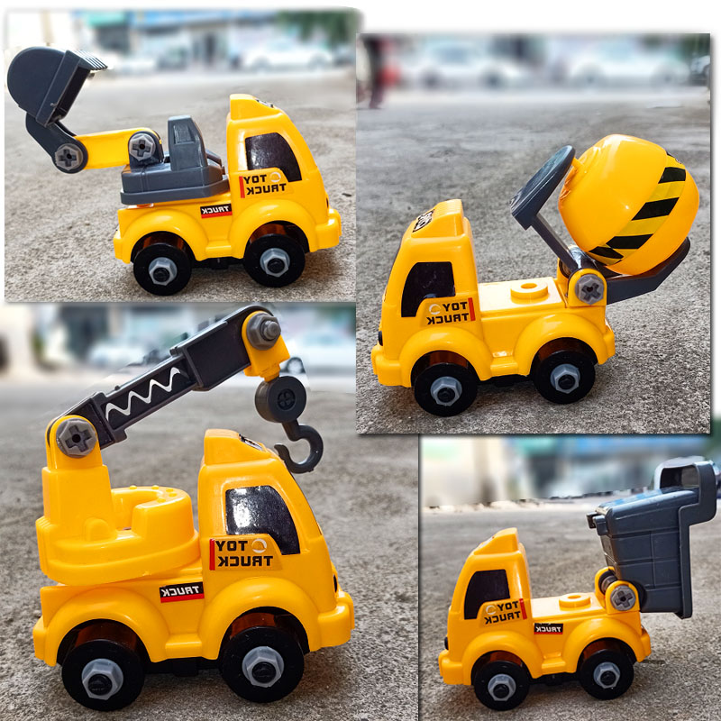 Children's Puzzle Dismantling Engineering Car Toy Sets set 4 only Excavator Stir truck Car Baby can assemble nut 3 years old